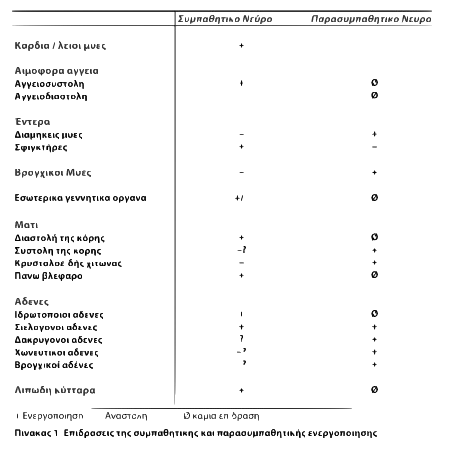 Έτσι, η λειτουργική κατάσταση ενός οργάνου που δραστηριοποιείται και συμπαθητικά και παρασυμπαθητικά, εξαρτάται πάντα από την εξισορρόπηση της δραστηριότητας μεταξύ των δύο. Ο καθοριστικός παράγοντας, ωστόσο, είναι η επικράτηση του στοιχείου της διέγερσης ή αναστολής του ΑΝΣ, αναφορικά μ’ αυτό το συγκεκριμένο όργανο.